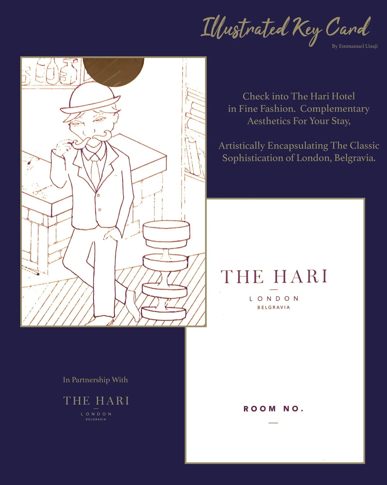 Collaborated with Fine Artist Emmanuel Unaji translating Illustrations to graphic design for the Key Card Holders capturing the Hotels essence the car .